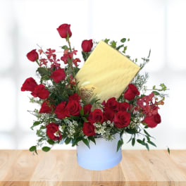 Price: $255.00 Caja de rosas y chocolates para cumpleaños en Commack New York Product Tags: Next-day Delivery