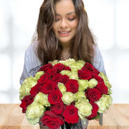 Price: $368.00 Ramo de 50 rosas, lirios y stock (incluye listón personalizado) Product Tags: Next-day Delivery